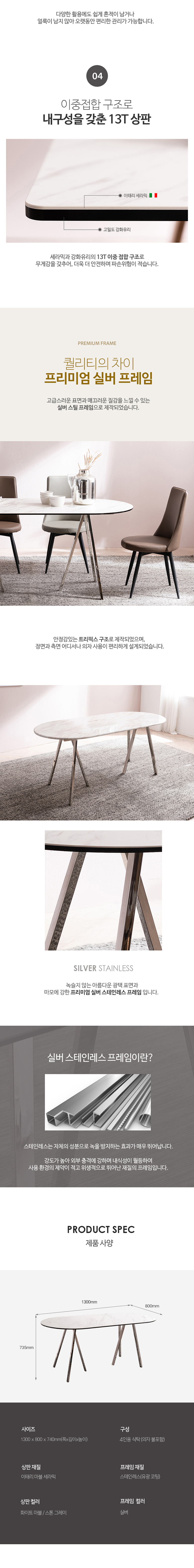| 색상 | 상판 : 세라믹 / 다리 : 실버스텐 | ||