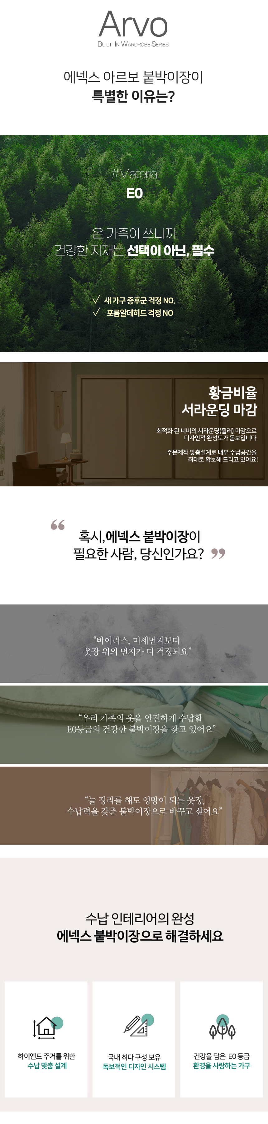 • 아르보 E0 여닫이 무몰딩 붙박이장 15cm