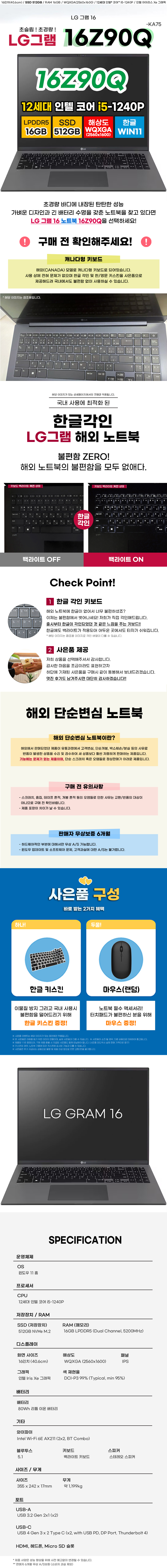 LG그램 16Z90Q-KA75 12세대 i5 16GB 512GB 노트북