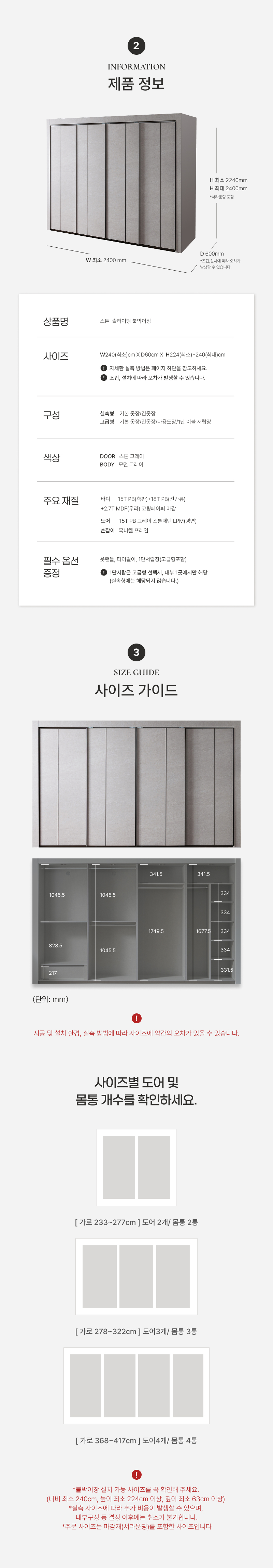 | 색상 | 도어:스톤그레이/몸통:메이플 | 구성품 | 미닫이 붙박이장 |