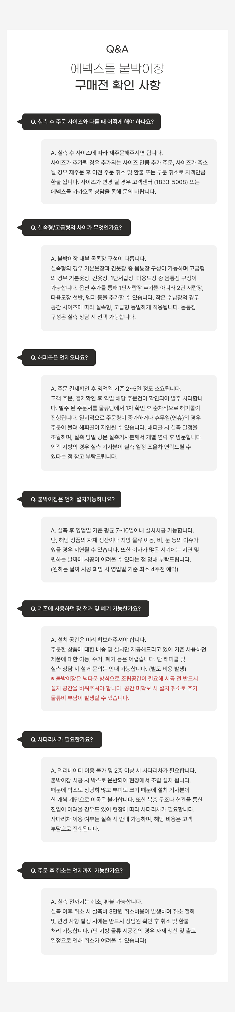 실측 후 주문 제작 상품 (붙박이장, 중문) : 실측에 따른 주문서 작성 후 제품 생산에 들어 갔을 경우 취소 불가 (부득이한 사정으로 취소 시 비용 발생)